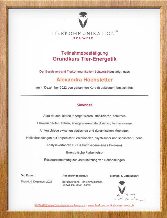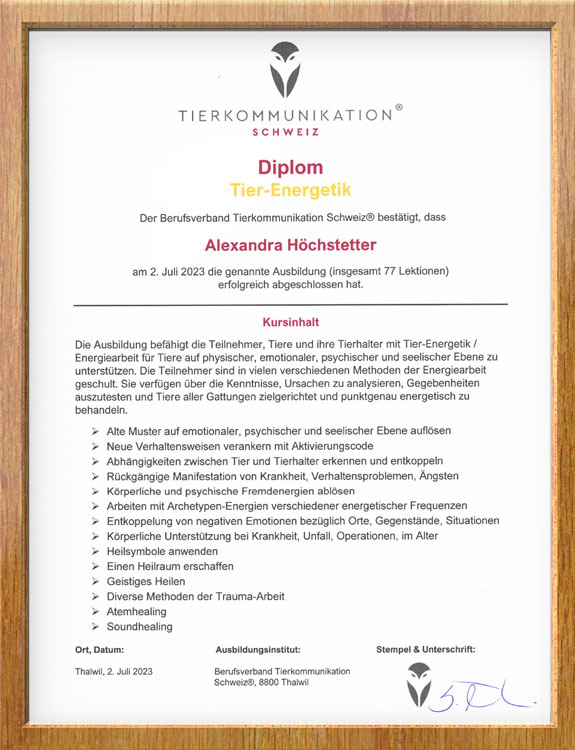 Tierkommunikation & Tierenergetik mit Alexandra Höchstetter